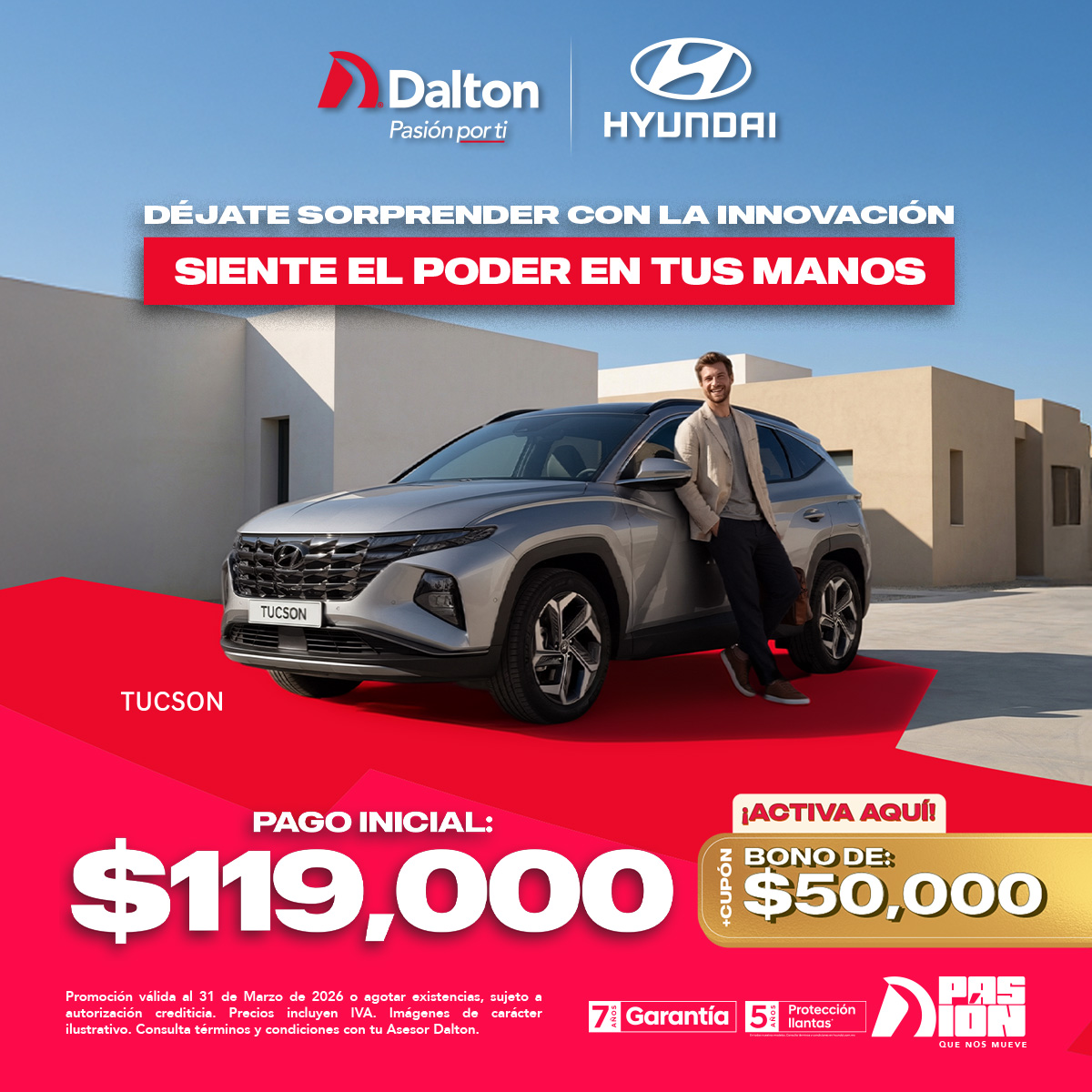 Promoción válida al 31 de Marzo de 2026 o agotar existencias, sujeto a autorización crediticia. Precios incluyen IVA. Imágenes de carácter ilustrativo. Consulta términos y condiciones con tu Asesor Dalton.